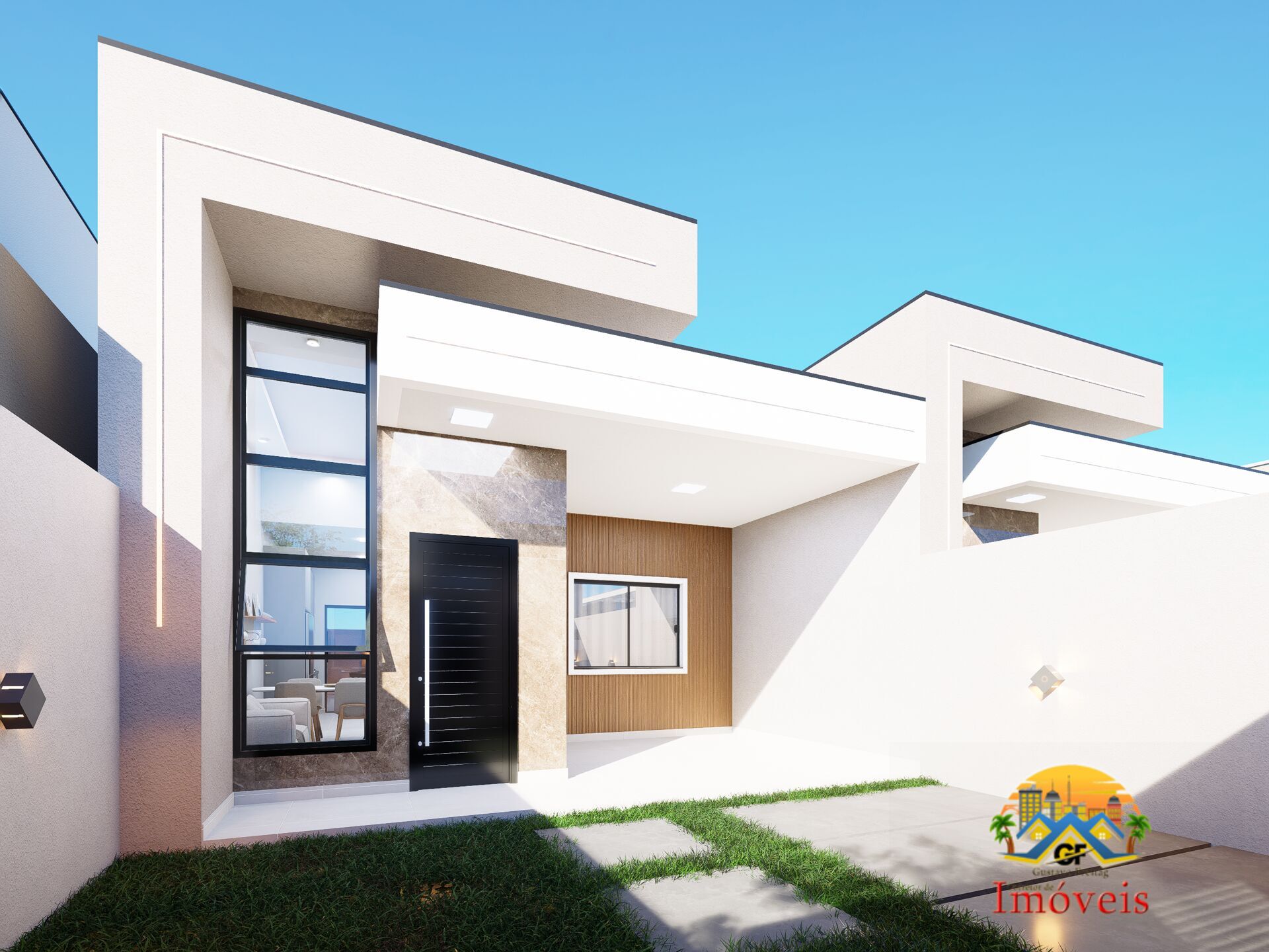 Fachada moderna com paisagismo
